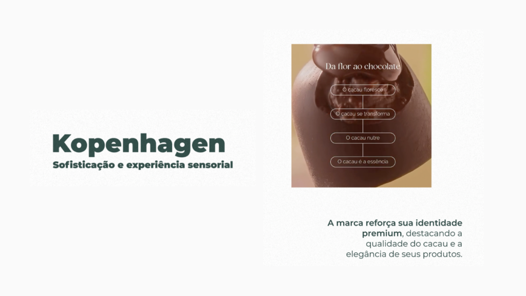 Esse tipo de estratégia é eficaz para públicos que buscam exclusividade e indulgência. A experiência sensorial é amplamente usada por marcas de luxo e reforça o posicionamento premium da Kopenhagen.